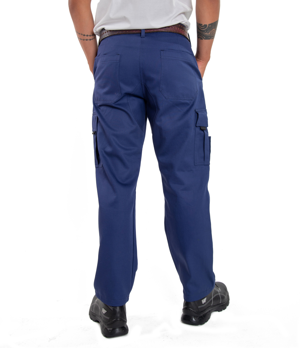 Pantalon cargo 4 bosillos confeccionado en gabardina Grafa70 homologada, tapa de bolsillo bordada.